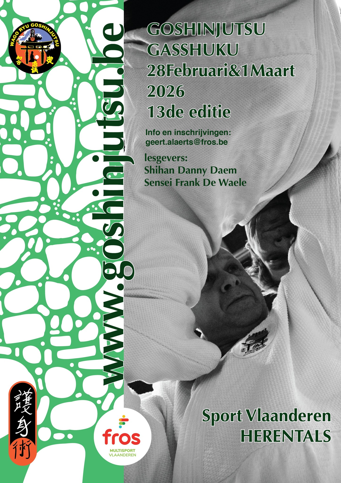 12e editie Gasshuku Goshinjutsu Trainingskamp op 26 & 27 april 2025. Schrijf jou vlug in! Open voor iedereen.